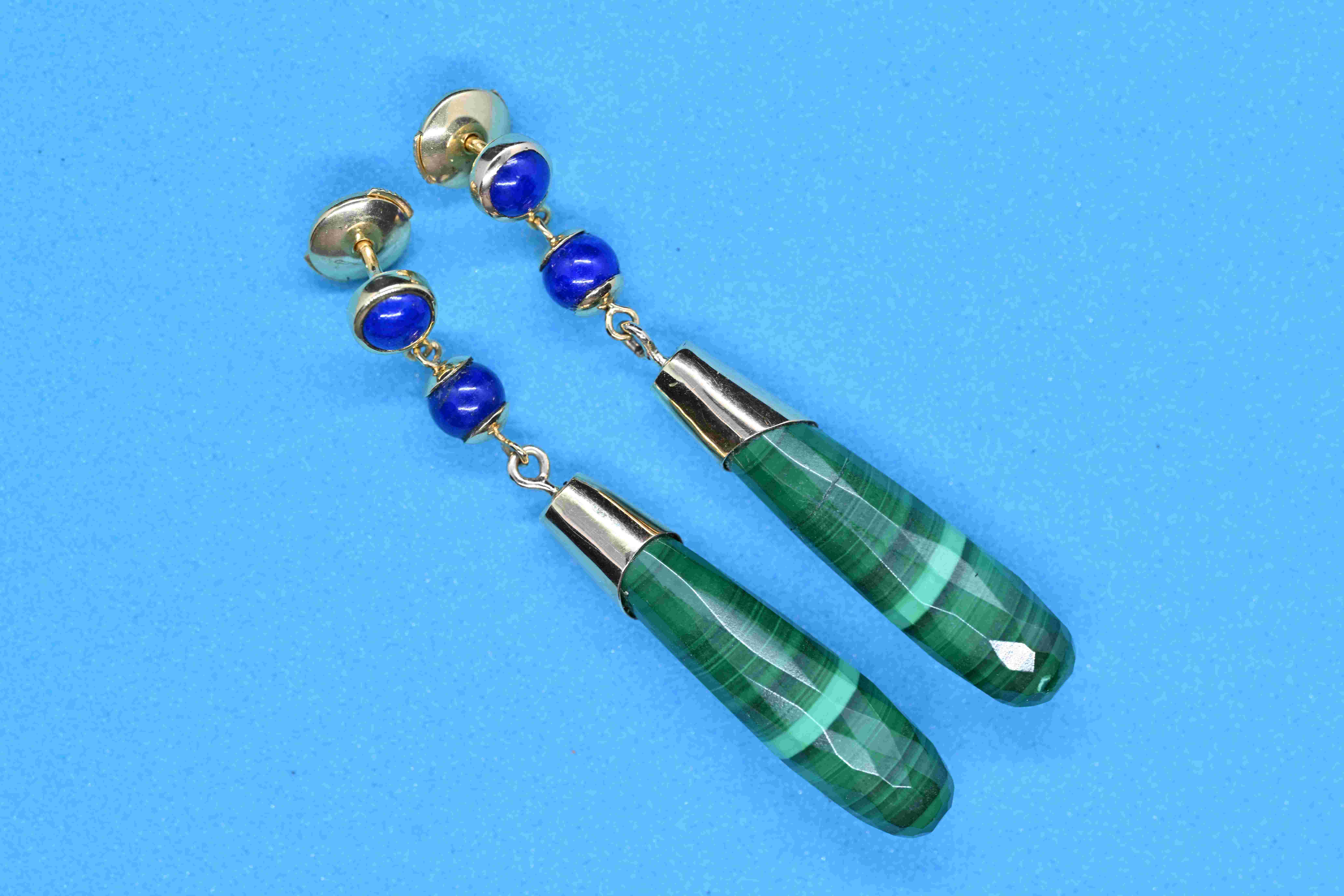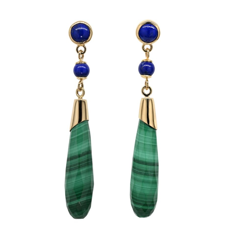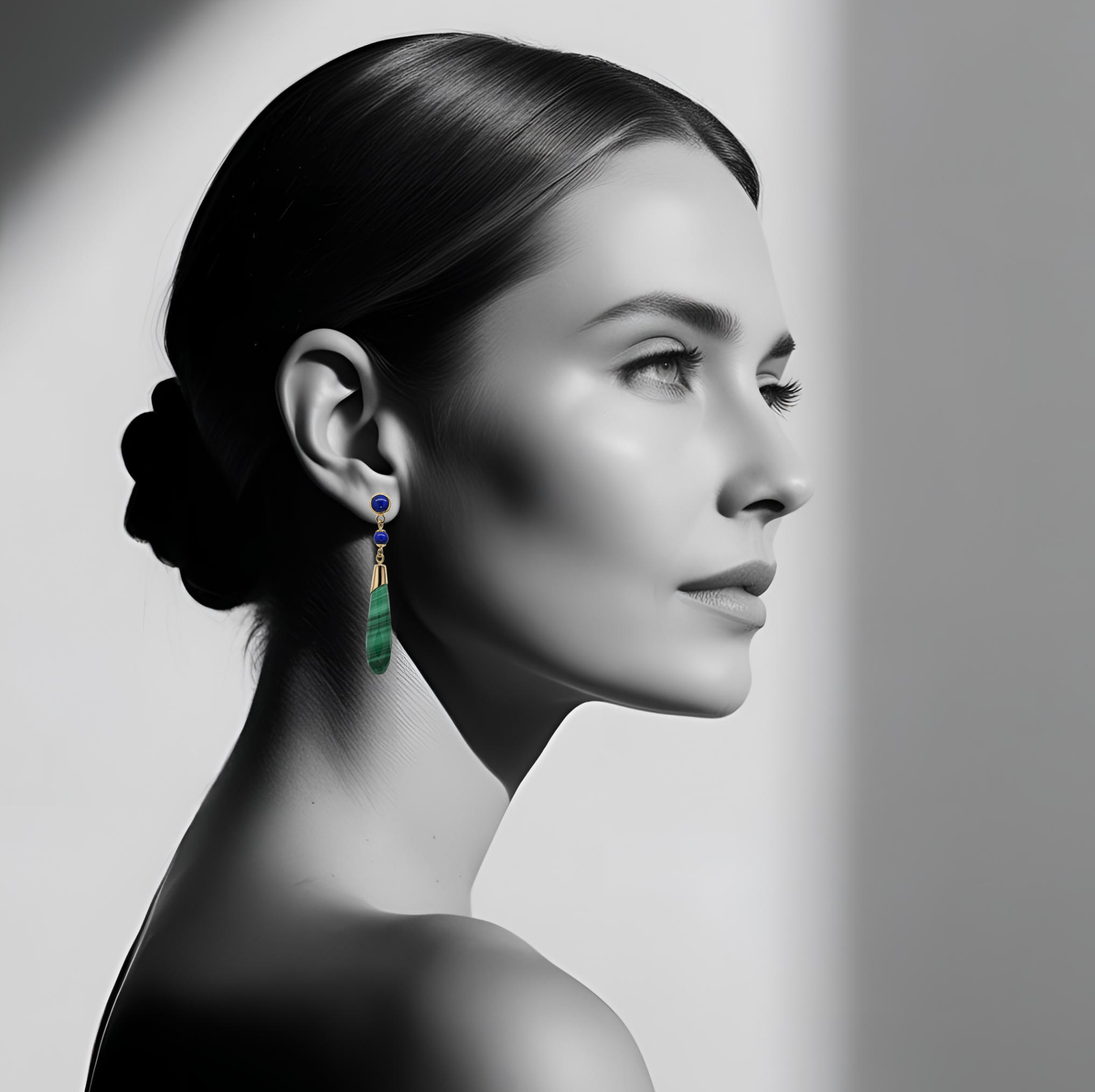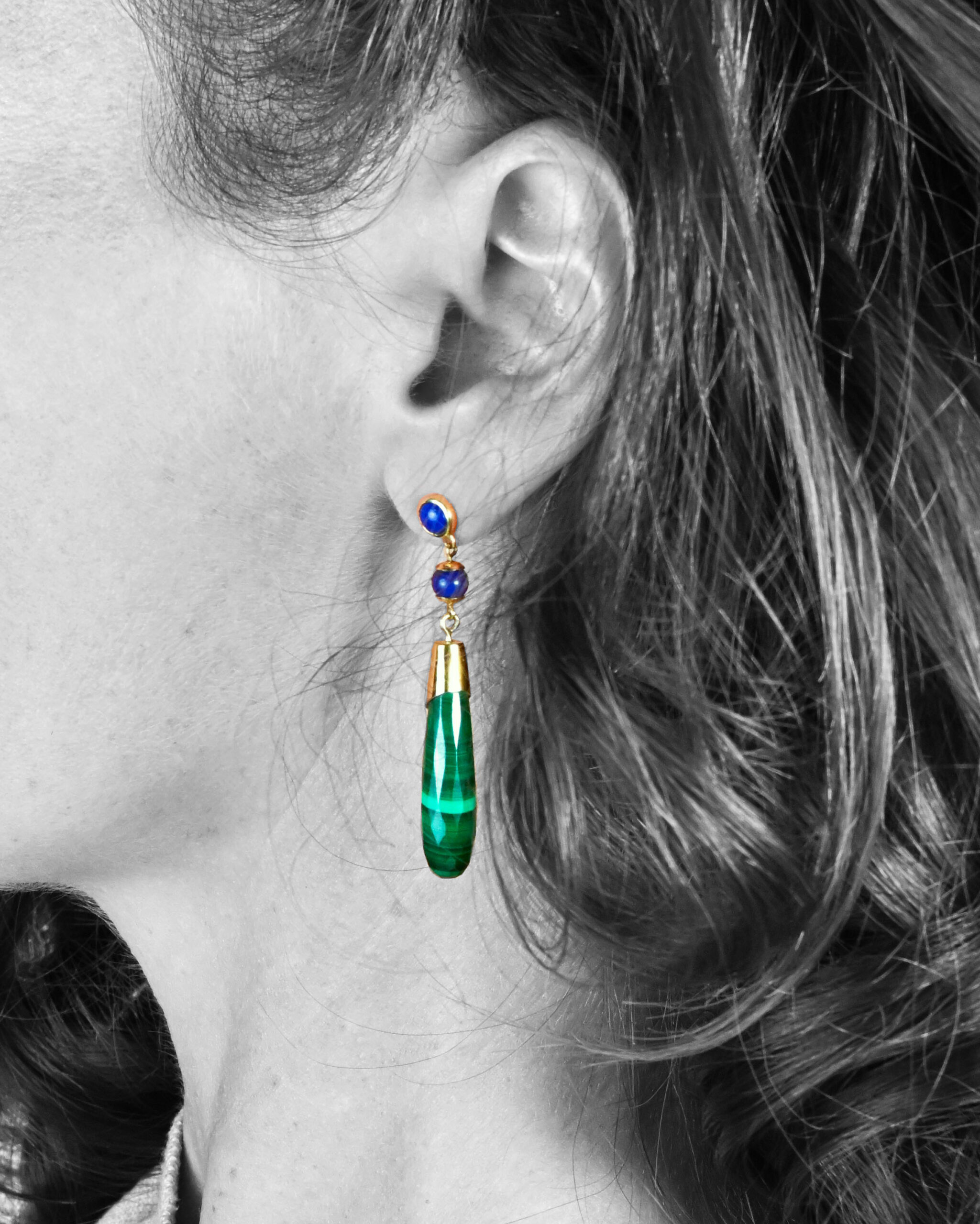 Sculptées dans l’élan de la modernité, les boucles Mirae allient la profondeur du lapis-lazuli à la force végétale de la malachite.