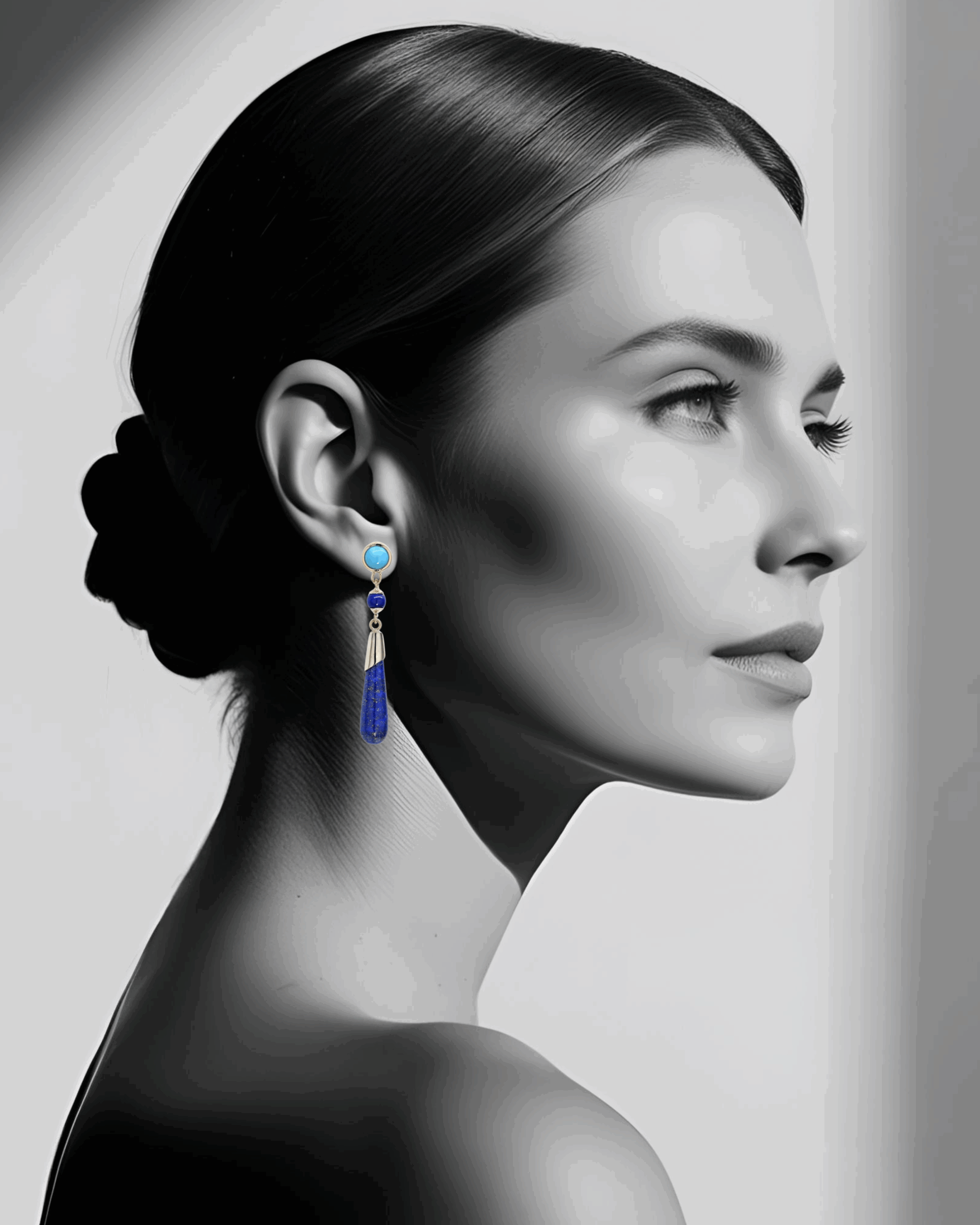 Sculptées dans l’élan de la modernité, les boucles Mirae allient la profondeur du lapis-lazuli à la force végétale de la malachite.