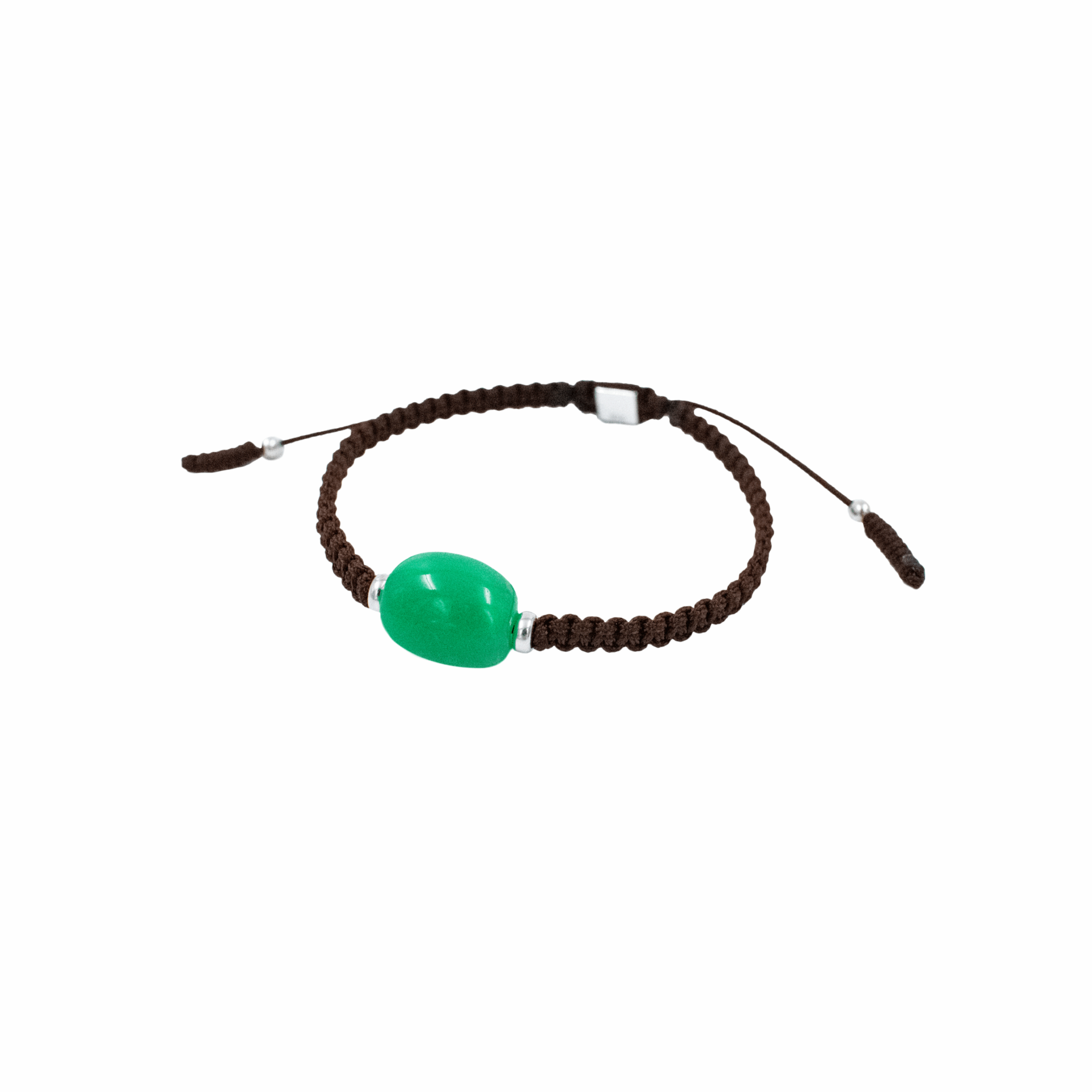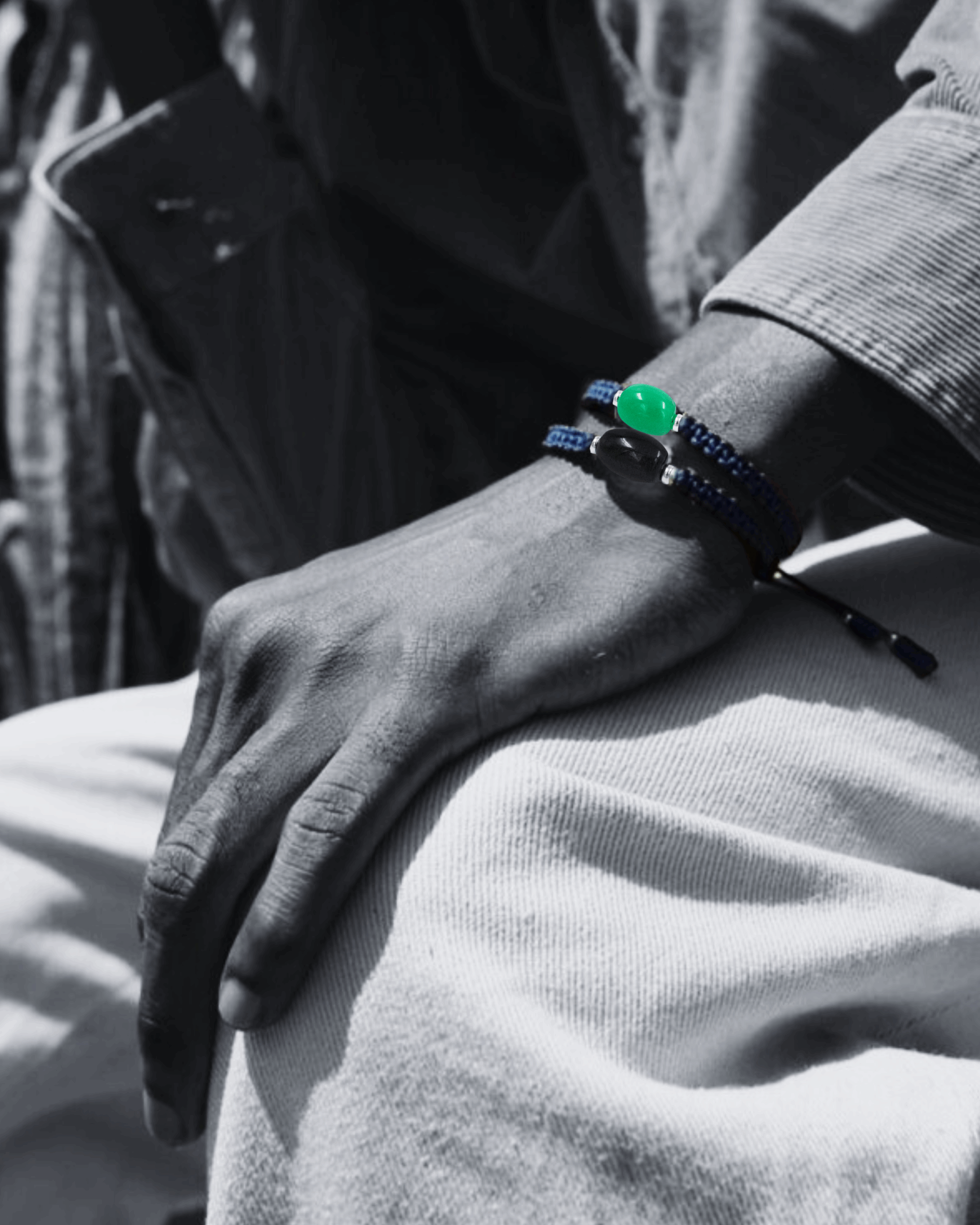 Les bracelets Ndoto allient le tissage macramé à des pierres éthiques, taillées à la main en Tanzanie dans l’atelier de la Maison Lithos Africa.